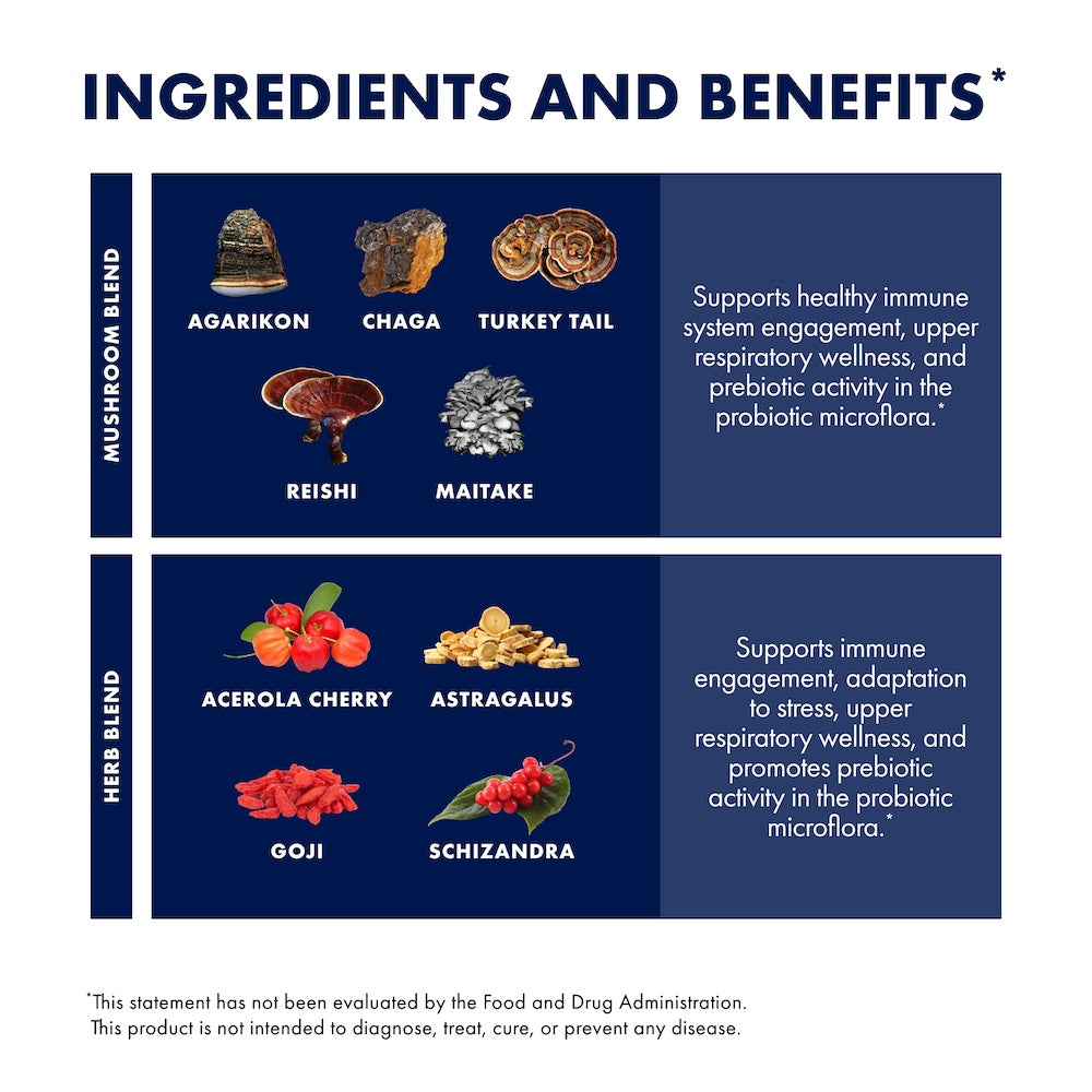 • Maitake - Well-known for supporting an engaged yet balanced immune response.*